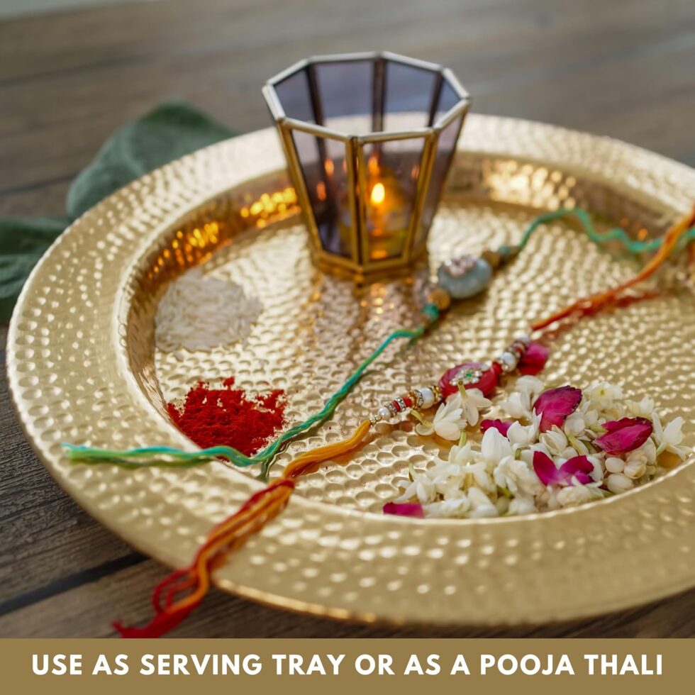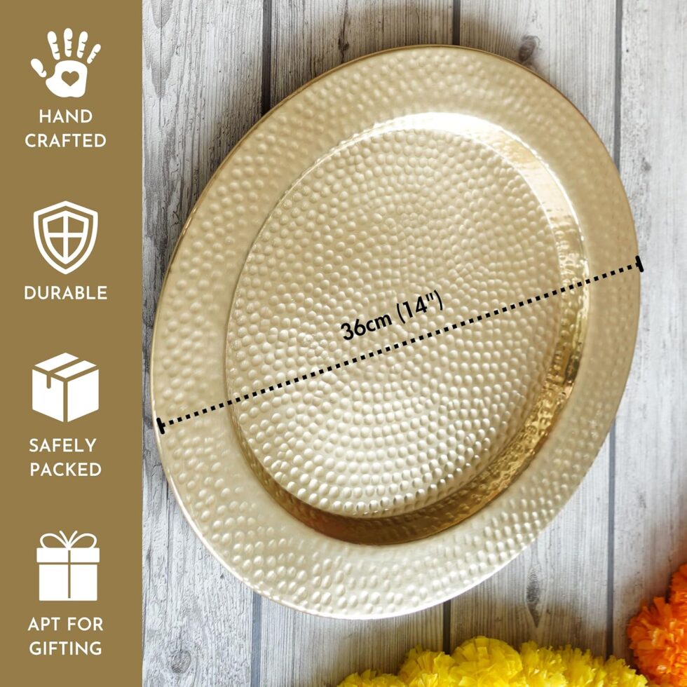 Aluminium Round Shape Hammered Thali for Diwali Decoration | Centre Table Home Interior Office Decor | Festival Special Item for Durga Pooja, Navratri & Deepawali Puja