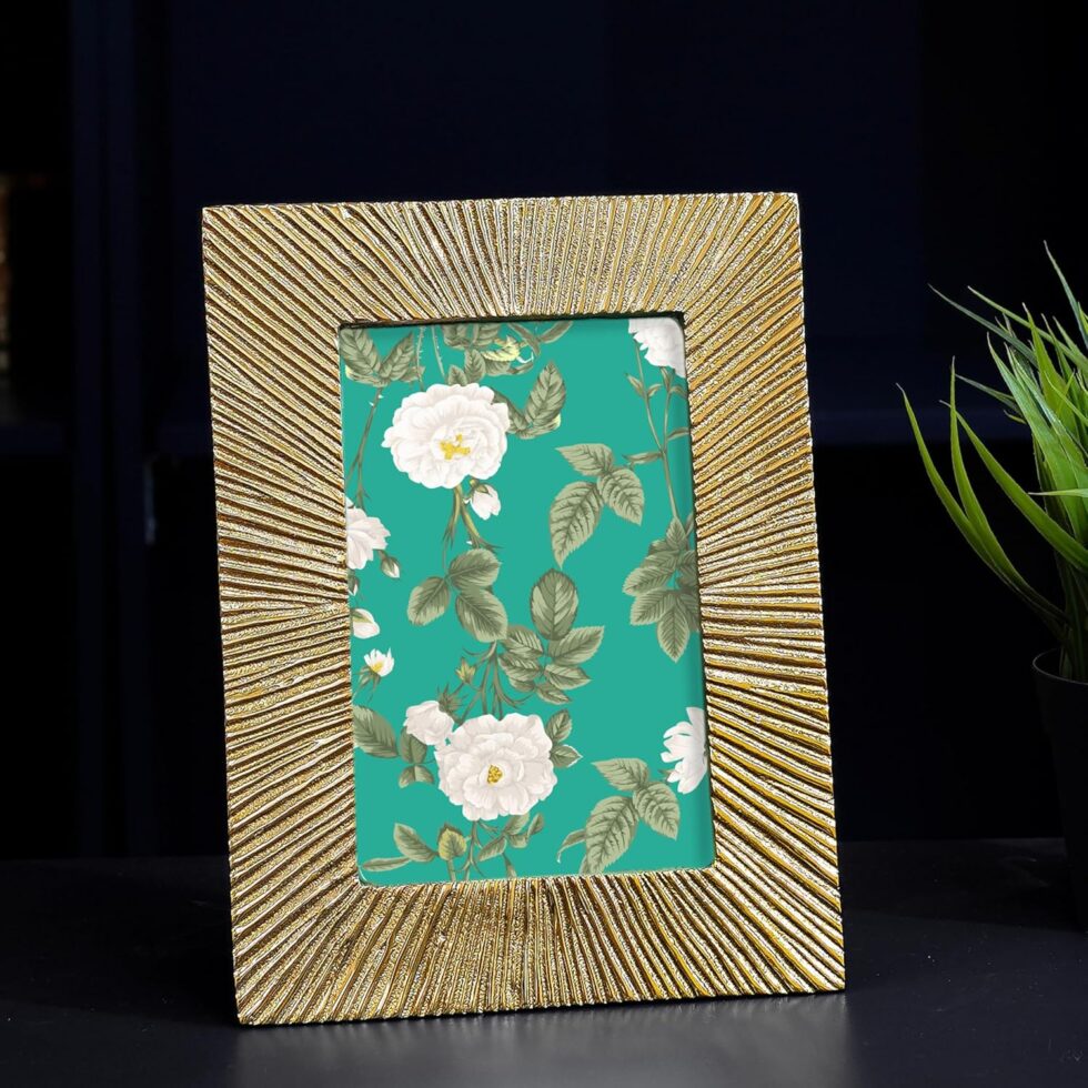 Add a touch of elegance and warmth to any room with this luxurious golden textured photo frame. Crafted with a radiant sunburst pattern, the metallic finish captures and reflects light beautifully, creating a striking focal point on your wall or tabletop. Whether showcasing cherished family photos, wedding memories, or artwork, this versatile frame brings a regal and timeless feel to your decor.