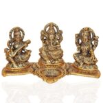Divine Trio Blessings Features intricately crafted brass idols of Goddess Lakshmi (wealth), Lord Ganesha (remover of obstacles), and Goddess Saraswati (knowledge), bringing balanced prosperity and spiritual perfection to any space