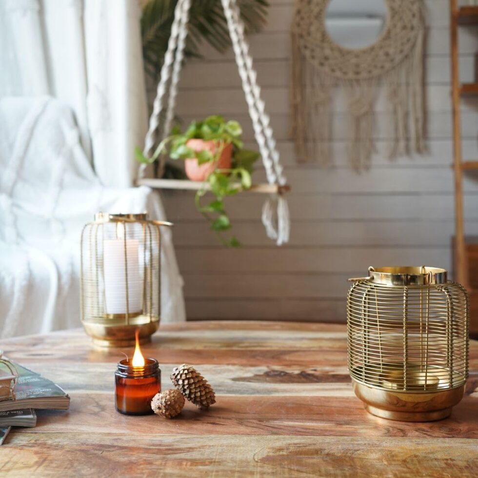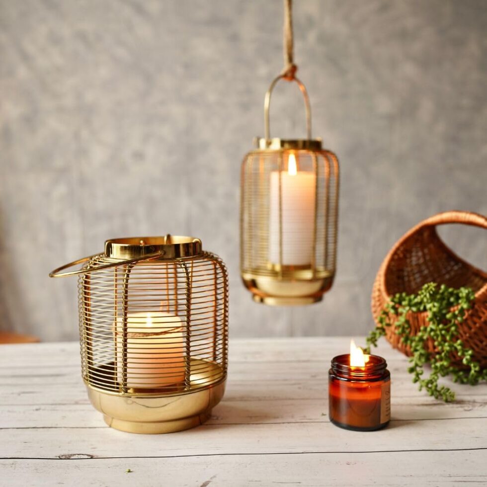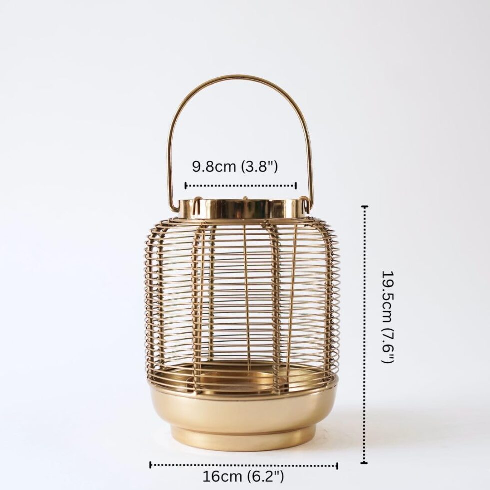 Classic Wire Metal Lantern for Home Decoration Indoor Outdoor, Parties Boho Style Decorative Lantern for Table-top and Pillar Candle Holder | Brass Small (Candle not Included)