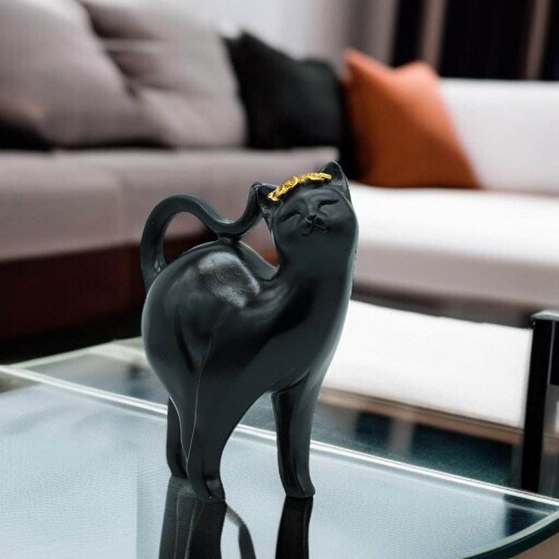 Elegant Black Cat Statue with Golden Accent – Modern Home Decor Inspiration