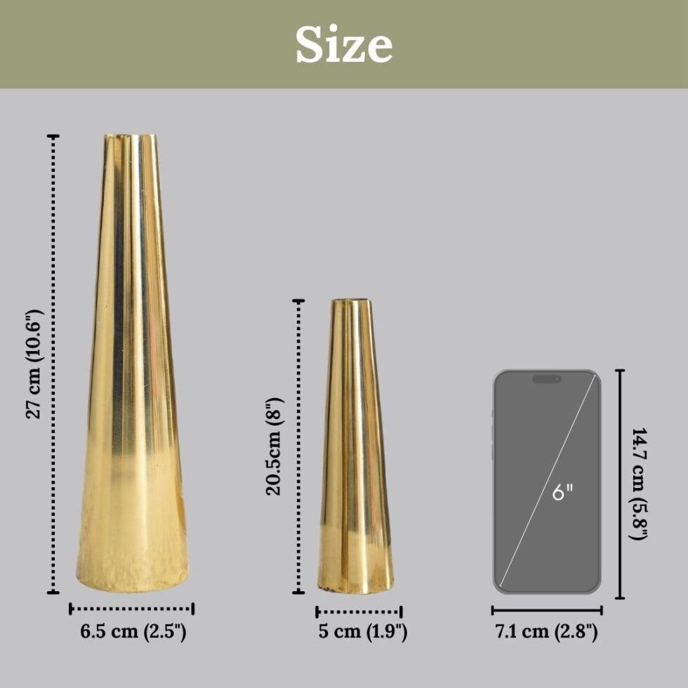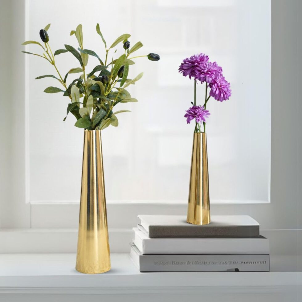 Golden Metal Slim Cone Flower Vase for Home Decor Bedroom Living Room Office Wedding Table Decorative Item for Festivals Birthday Valentine’s Day (Flower Not Included)