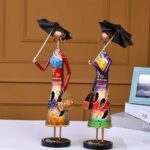 Handmade Metal Umbrella Doll Set | Elegant Decorative Showpieces for Living Room & Office D?cor | Antique Finish Artistic Figurine Set