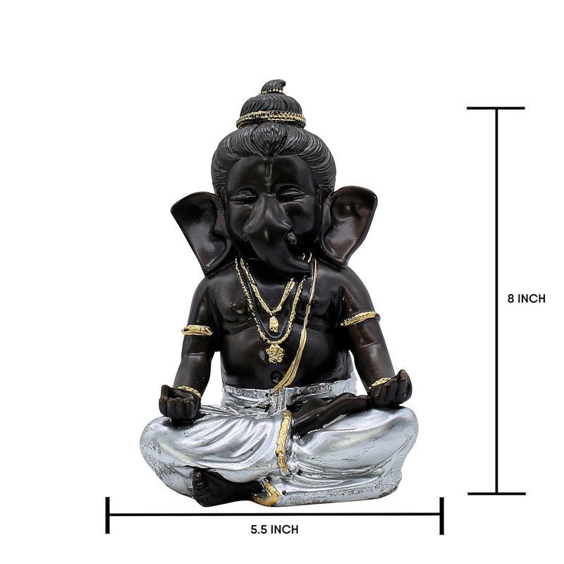 Lord Ganesha Idol for Home Decor | Black & Silver Meditating Ganpati Statue | Polyresin Ganesh Murti for Pooja Room, Office, Car Dashboard & Gift 6 Inch