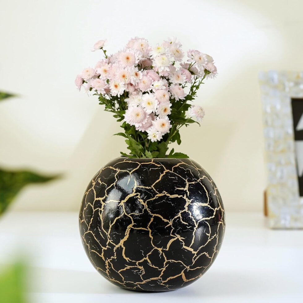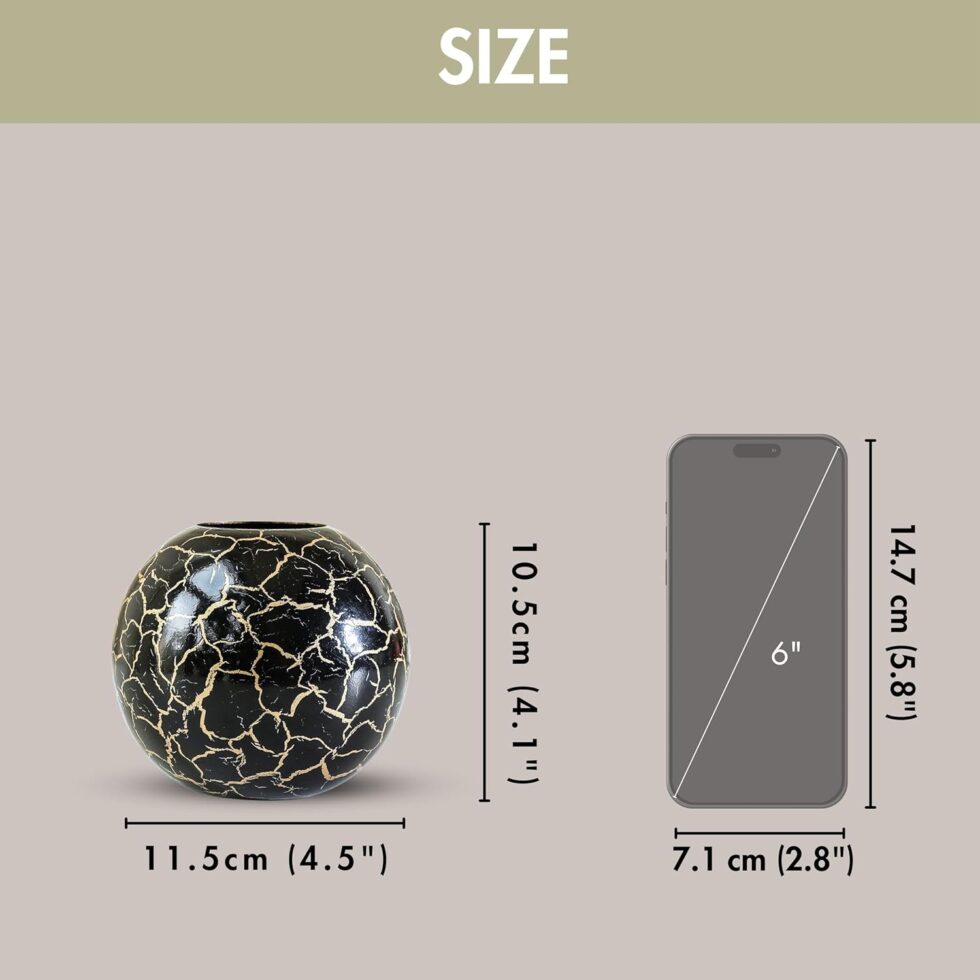 Metal Ball Vase for Home Decor|Flower Pot for Bedroom Living Room Office Wedding|Flowers Arrangement for Birthday Anniversary Festival|Black Crackled Small (Flower Not Included)