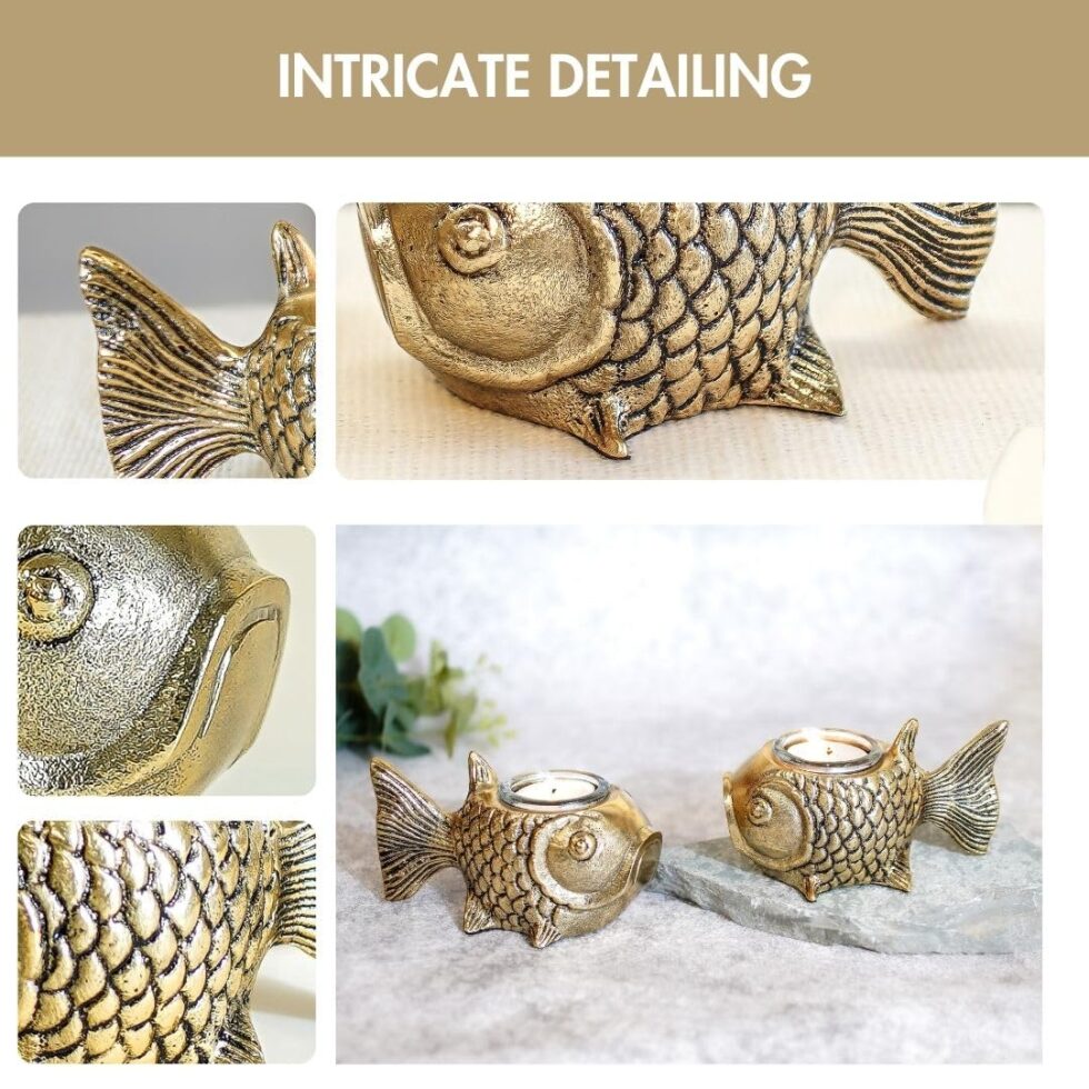Metal Fish Aluminum Figurine with Votive Good Luck and Success | Candle Holder for Home Decor Tabletop Living Room | Showpiece for Valentine’s Day, Birthday