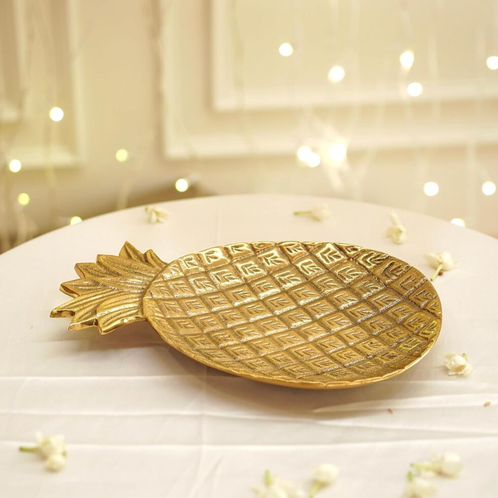Metal Pineapple Shape 10″ inch Tray for Home Decor Diwali Gifting Item | Durga Pooja, Navratri Pooja Festival Decorative for Living Room Dining Ofice Center Table | Golden, (Only Tray Included)