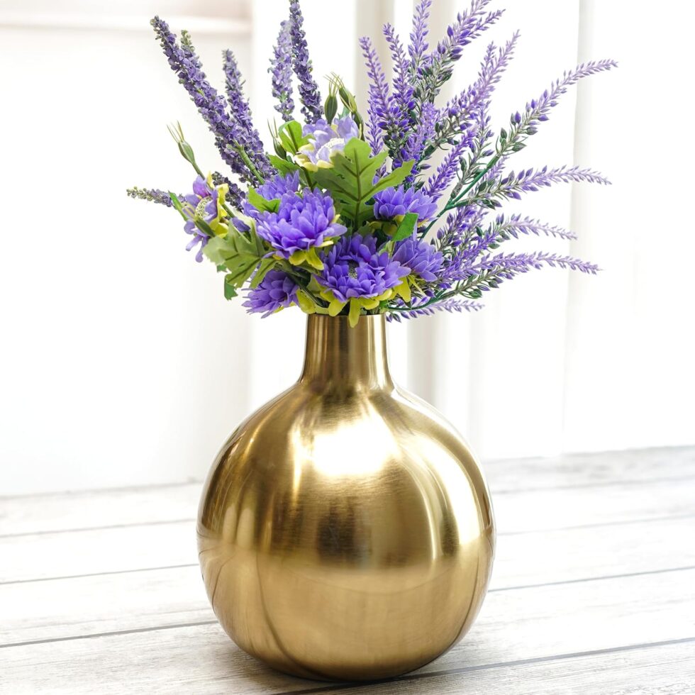 Premium Golden Finish Shiny metallic vase adds luxury and elegance to any dcor setting.