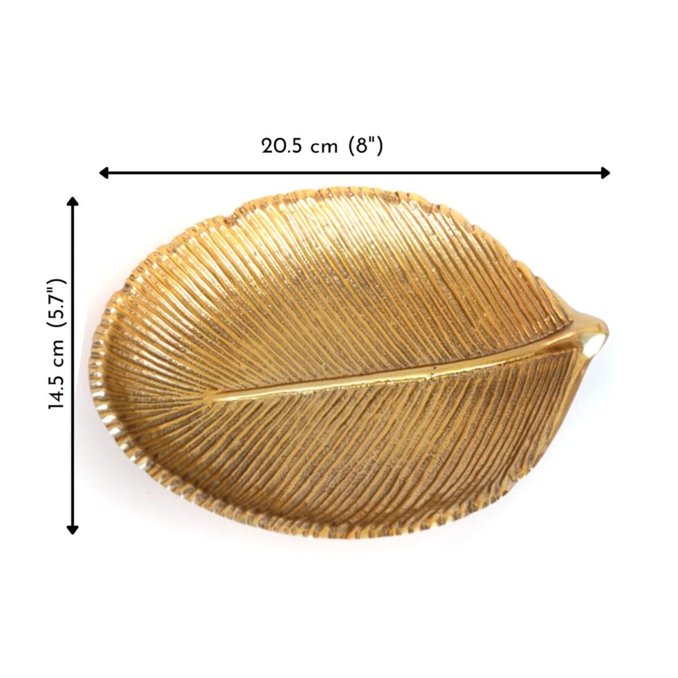 Metal Small Leaf Shape 8 inches Tray for Home Decor Gifting Item | Diwali, Festival, Pooja Decorative for Living Room Dining Office Center Table | Golden, Small Size (Only Tray Included)