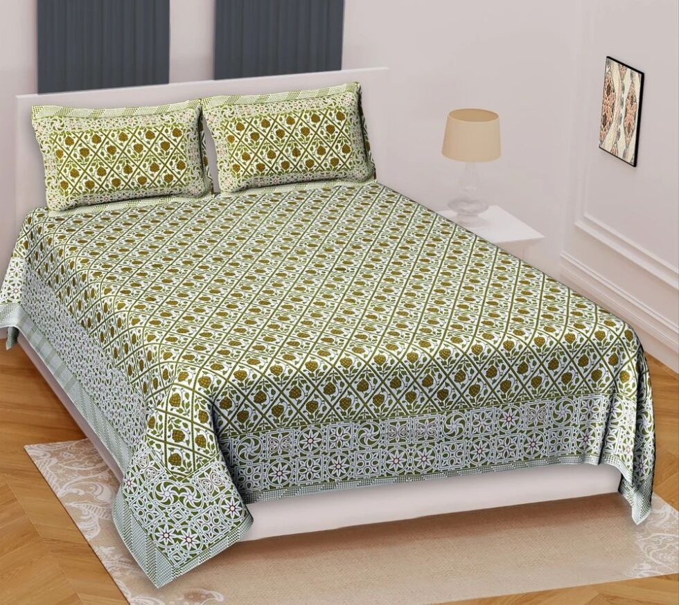 Bring the timeless charm of Rajasthan into your bedroom with this exquisitely printed Jaipuri cotton bedsheet. Crafted from 100% natural cotton, it offers superior breathability, durability, and a luxuriously soft touch ? making it ideal for a restful night?s sleep. The traditional Rajasthani floral design features delicate patterns in soothing tones, adding an elegant and ethnic appeal to your bedding.