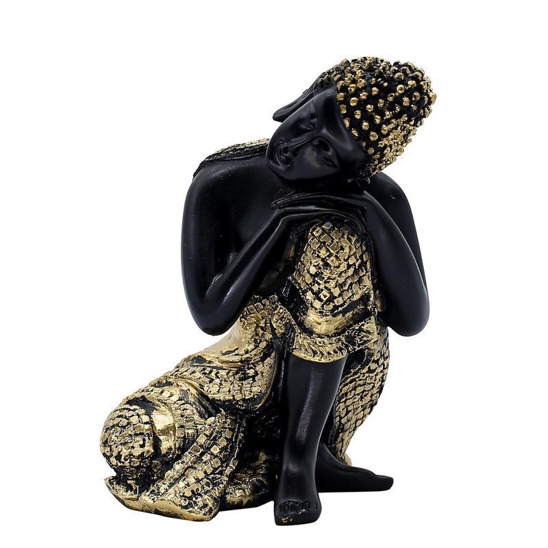 Resting Buddha Showpiece Statue, Black and Gold, 16.5 cm x 12.7 cm