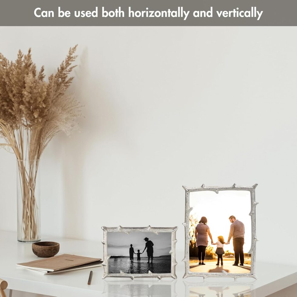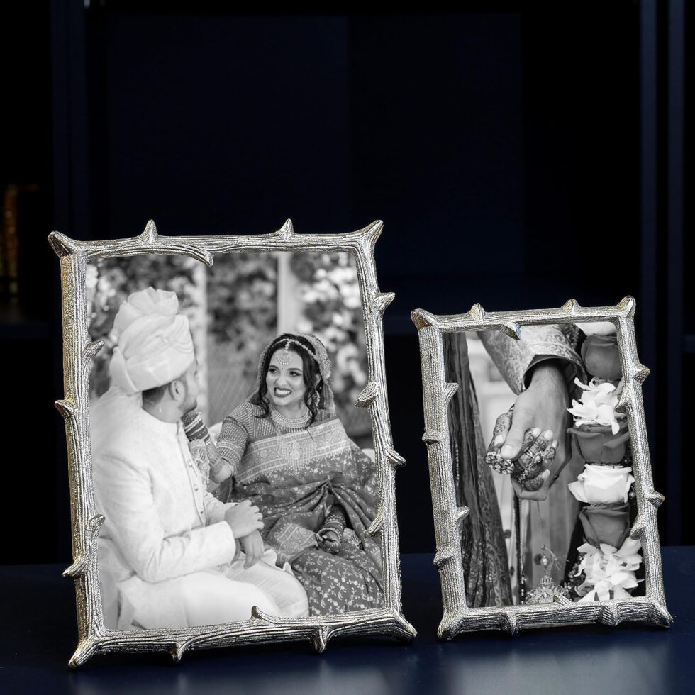 Silver Elegant Metal Twig Designer Rectangular Photo Frame Tabletop – Perfect For Home Decor, Table Decor | Best Gift For Home Decor, Birthday, Anniversary