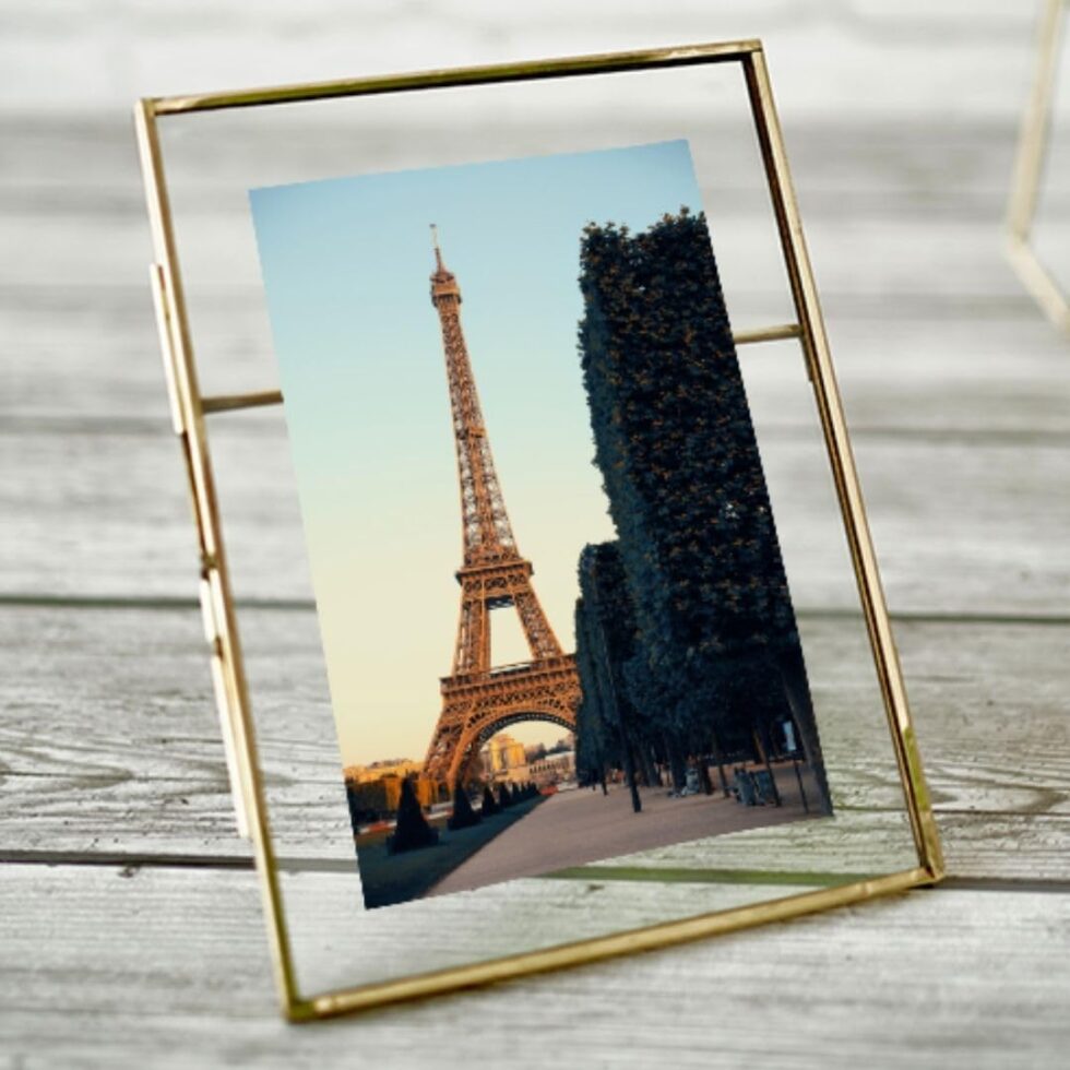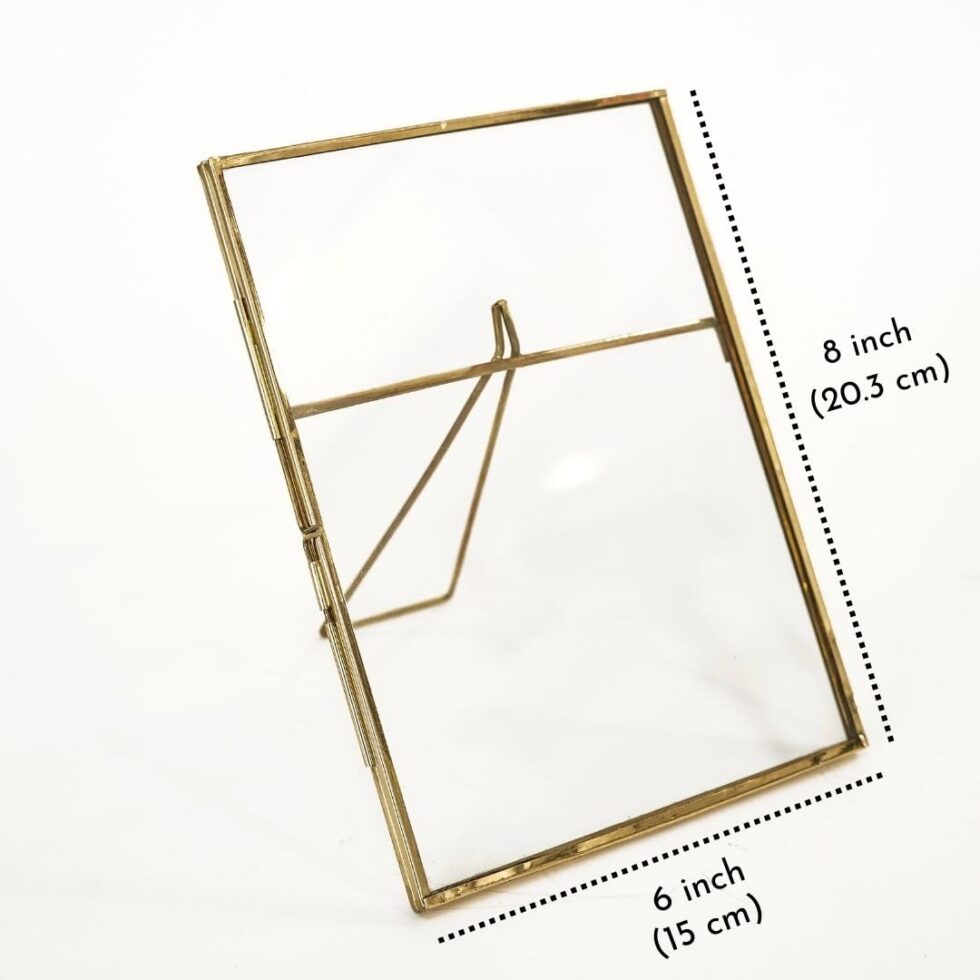 Vintage Style, Brass & Glass Metal Floating Rectangular Picture Tabletop Frame With Locket Closure For Home Decor, Birthday, Anniversary