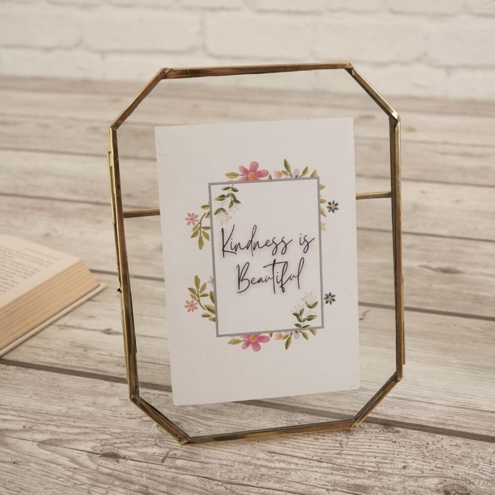 Vintage Style Octagon Brass & Glass, Metal Floating Picture Frame With Locket Closure | Best Gift for home decor, Birthday, Anniversary, Valentine’s day | (Vertical tabletop Display