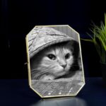 Vintage Style Octagon Brass & Glass, Metal Floating Picture Frame With Locket Closure | Best Gift for home decor, Birthday, Anniversary, Valentine’s day | (Vertical tabletop Display